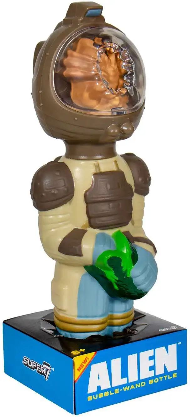 Modeled after the classic 1960’s bubble bath containers is the Alien Kane with Facehugger Super Soapie! This retro plastic bottle is the perfect accessory for toy shelf, desk, or bathtub. The heads on the Super7 Super Soapies unscrew with a bubble wand attached so each can be filled with soap and F-U-N can be had blowing bubbles. The Super Soapie stands approximately 10-inches tall and holds approximately 15 ounces of soap.