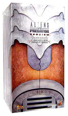 The Movie Masterpiece Predator Fully Poseable Model Kit stands 14 tall; requiring some assembly, the Masterpiece Predator features intricate armor plating, a fabric net mesh body suit, and boasts a total of 22 points of articulation. Weapons include the following: plasma cannon, coiled whip, extendable spear, closed shuriken, wrist blade with extendable blades, wrist computer, syringe, cannon (handheld version). Accessories include the following: removable Predator mask (damaged version), corrosive liquid container, skull necklace, neck wrap, bandolier, med kit, cleaner case, interchangeable mandibles, and an Alien corpse/environmental display base featuring Predator nameplate and AvP:R logo. In Aliens VS Predator: Requiem, a single Predator, the Cleaner, is dispatched to the Earth to obfuscate the wreckage of a Predator vessel and to eradicate a handful of extant Xenomorphs. In the process of conducting his business, the Predator encounters a new, terrible adversary in the form of the PredAlien.
