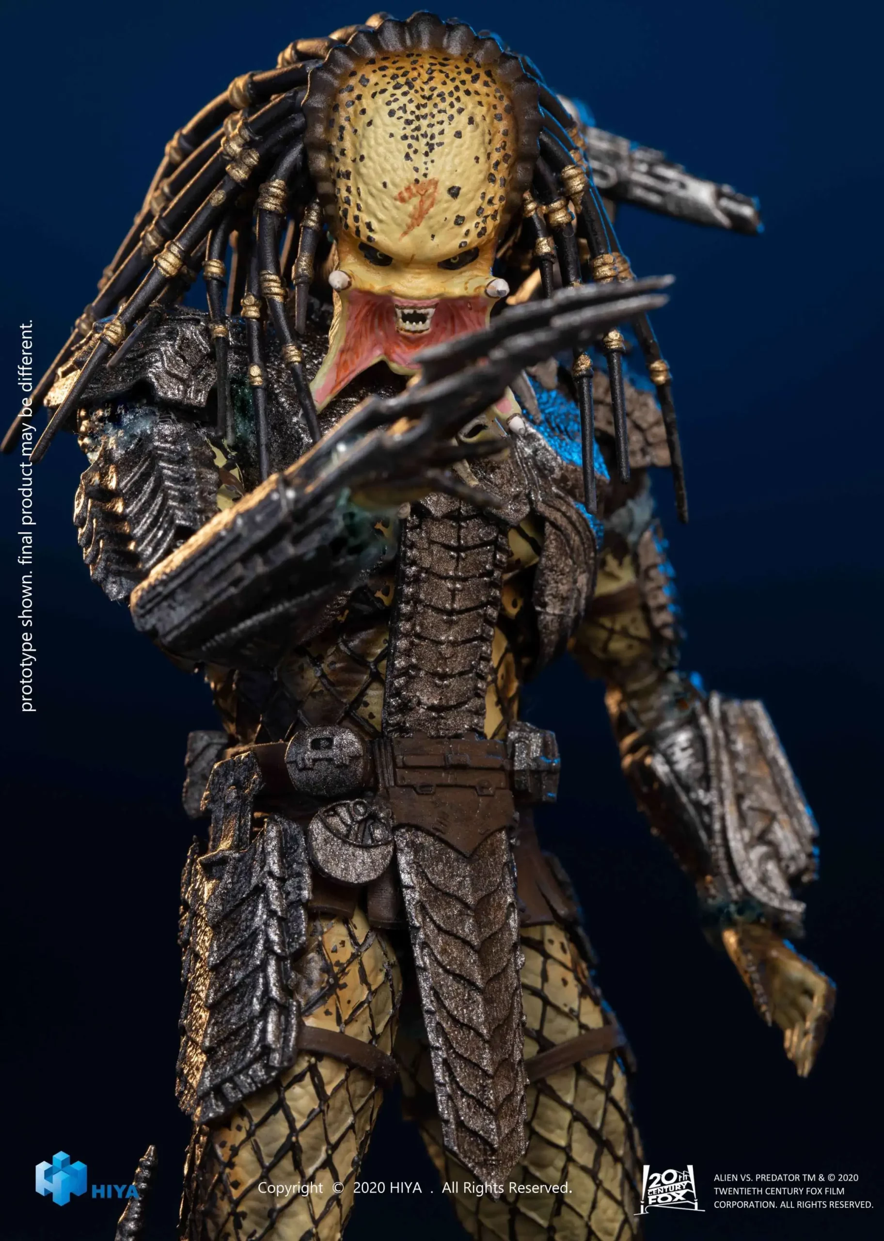 From Hiya Toys. A PREVIEWS Exclusive! Based off the blockbuster AVP: Alien vs. Predator movie, Hiya Toys presents this 1/18-scale action figure of the Scar Predators, a hardened warrior hunting the alien Xenomorphs beneath the Antarctic ice sheet in an ancient pyramid. This figure captures the creature’s iconic look with a fully poseable body and detailed paintwork at a 4 1/2″ size!