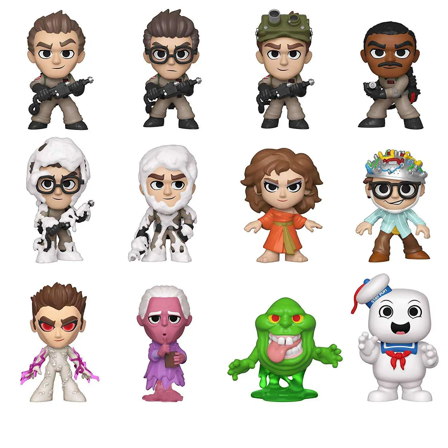 The entire Ghostbusters gang is present in Mystery Mini form including Dr. Peter Venkman with a proton pack, Dr. Egon Spengler with a proton pack, Dr. Ray Stantz with a proton pack, Winston Zeddemore with a proton pack, Dr. Egon Spengler covered in marshmallow, Dr. Ray Stantz covered in marshmallow, Zuul the Gatekeeper of Gozer, Louis Tully as Vinz Clortho, Gozer the Gozerian, Stay Puft Marshmallow Man, Slimer and the librarian ghost.