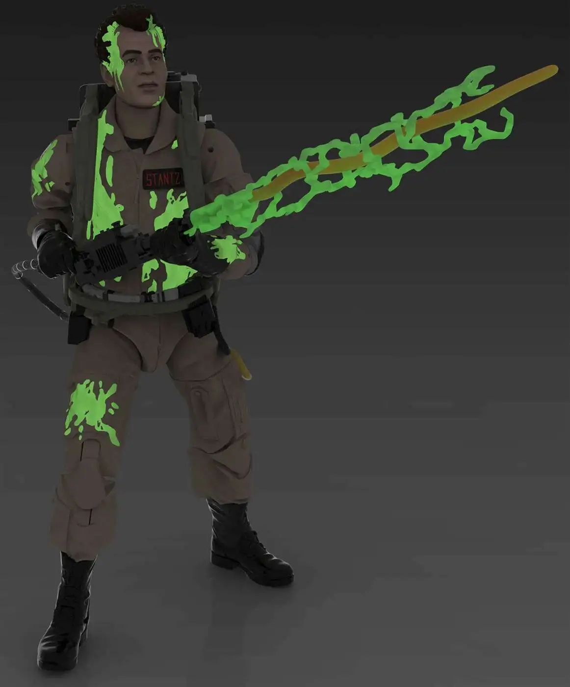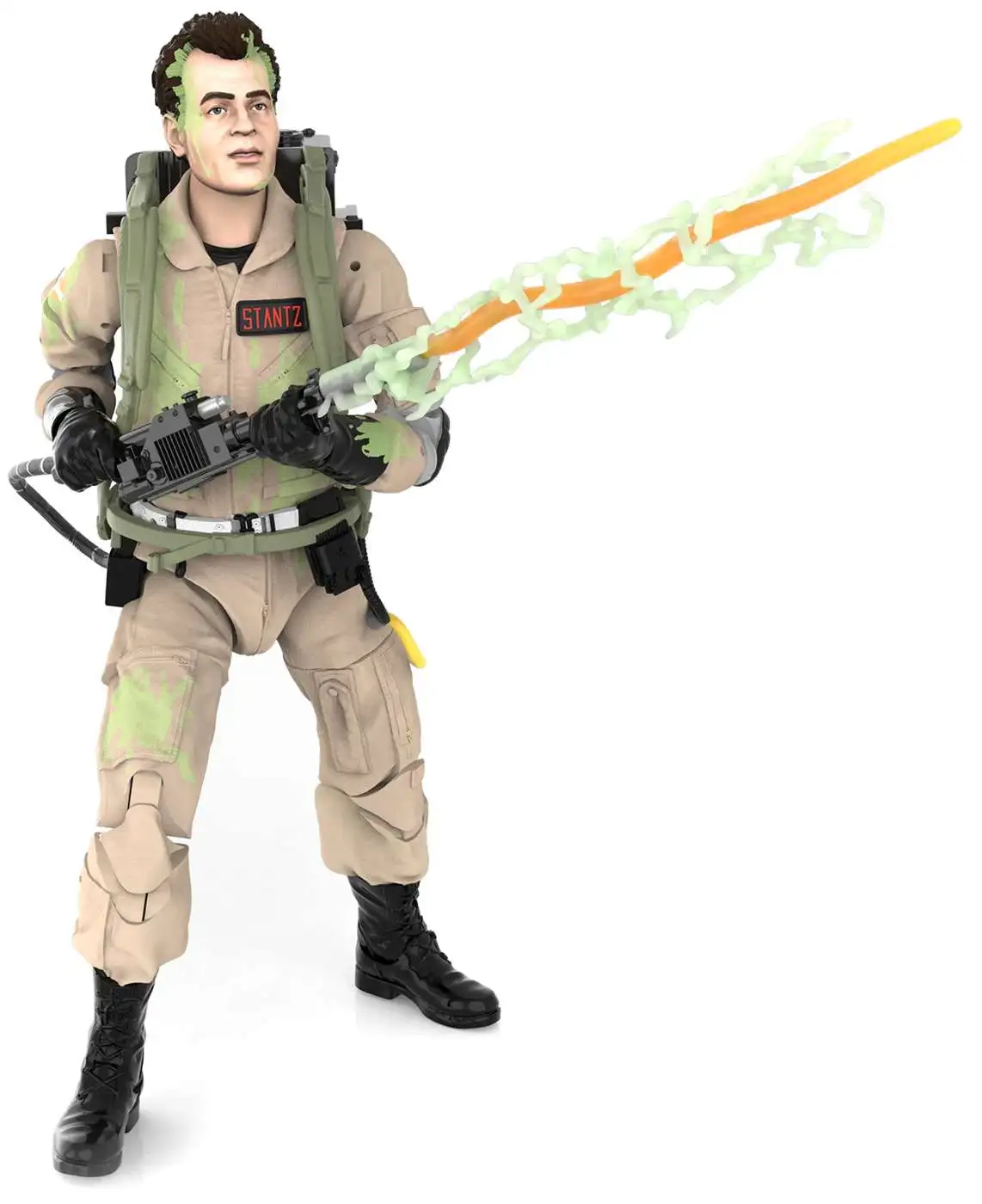This Ray Stantz action figure features glow-in-the-dark ecto-plasm deco for that supernatural slimed look. To charge glow-in-the-dark effect, place under light! This Ghostbusters Plasma Series action figure comes with 3 entertainment-inspired accessories, including proton pack, neutrona wand, and glow-in-the-dark proton stream. This six-inch-scale Ray Stantz action figure is detailed to look the character from the 1984 Ghostbusters movie, featuring premium detail, glow-in-the-dark deco, and multiple points of articulation.