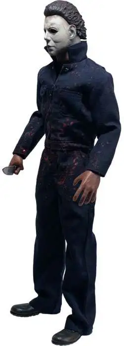 This amazing figure is 1/6th scale and has 30+ points of articulation so that you can pose your figure anyway you’d like. The figure also comes with two interchangeable hands, one for holding the included knife and an open hand to grab victims and because this is the Samhain Edition, the figure and knife is covered in blood splatter. The figure is fully clothed in a screen accurate costume with a working zipper. And to round the package out, the figure comes in a beautiful Collectors Box with a flip back window display.