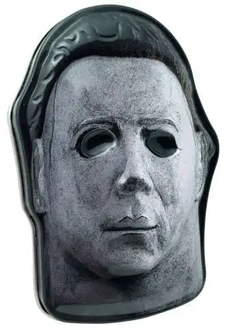 The arresting white mask worn by Michael Myers in the Halloween series is filled with 1.0 ounce of knife-shaped orange sours.