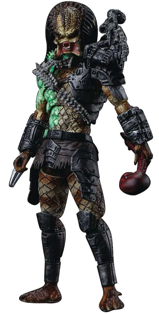 A PREVIEWS Exclusive! Based on the original 1987 Predator film where the Predator stalks his prey with deadly precision, this 1/18-scale figure features full articulation and stands approximately 4 1/2″ tall. This new PREVIEWS Exclusive Jungle Predator figure features a battle damaged appearance and comes with a bloody spine accessory and a stand for easy posing and display.
