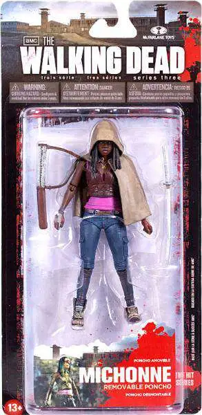 Michonne is the mysterious stranger who saves Andrea from walkers with her katana blade and two pet walkers in tow. She is a quiet, but fierce warrior. This action-figure comes with 24 points of articulation, removable poncho, katana sword and katana sheath.