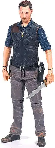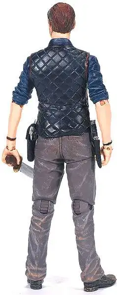 The charismatic leader of the seemingly utopian town of Woodbury, The Governor plays the role of stern, but just, leader–a hero and source of confidence and hope to the people he protects. But, the role he plays and the man he truly is are too very different things. Beneath his well-meaning facade is man capable of acts of violence and dread that could make even a Walker’s skin crawl. This action-figure includes 22 points of articulation, an alternate head without eyepatch, pistol with hip holster, hunting knife with sheath, and large knife.