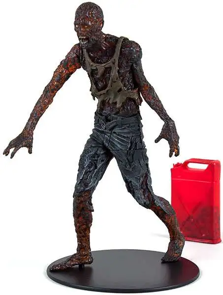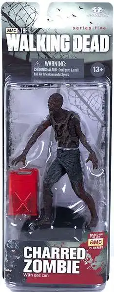It is now clear what it takes to take down a WalkerDestroy the brain! Anything short of that could be a death sentence for any living human. As the Governors Woodbury camp and Ricks group engage in full out warfare, one of the Governors main weapons is sabotaged by fire and gasoline when his screamer pit is ignited in a ball of flames! But fear not, with brains intact this Charred Walkers taste for flesh continues! This action-figure comes with approximately 5 points of articulation, gas can, and disk base.