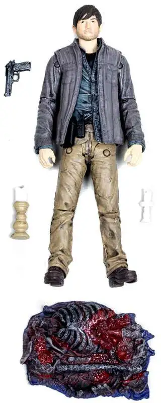 Introduced during the season 4 finale, Gareth is the smooth talking leader of the Terminus encampment. Based on the events of that final episode, in which he captures Rick and his group of survivors, Gareth clearly has an alternate agenda to help his people outlive this zombie apocalypse by any means necessary. This figure comes with approximately 22 points of articulation, pistol and Terminus memorial candles. Also included is a rotting human carcass, stripped of its meat and hinting at Gareths true intentions for Ricks Group.