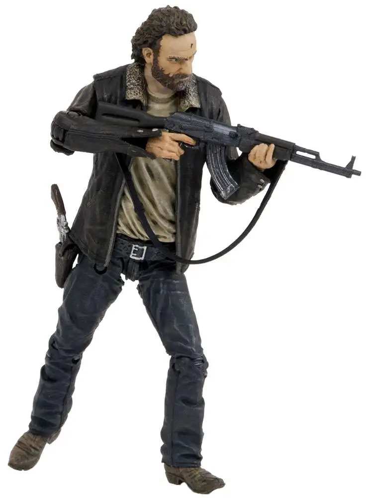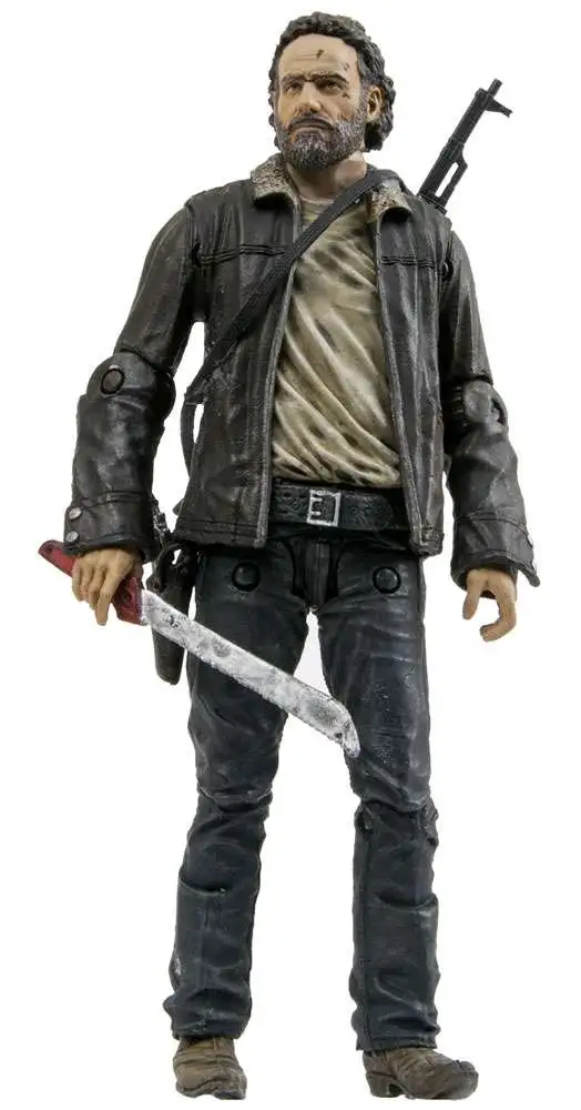 Rick Grimes Walking Dead McFarlane Series 8 action figure. A former Sheriff Deputy, Rick Grimes has always been a leader amongst the group of Atlanta survivors. Initially after resisting his destined role, Rick has finally accepted his place of leadership. Rick is ready to do whatever it take to keep his family and friends alive in this less than moral world. Comes with Assault Rifle Pistol and Wooden Stake
