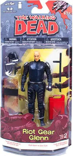 Glenn, an original Atlanta survivor, has become crucial to the survival of Ricks group due to his ability and agility at getting in-and-out of zombie-infested areas in order to search for food and supplies. Glenn, in full riot gear, features 28 points of articulation and is equipped with two pistols, riot shield, baton, gas can, and removable helmet with flip-up visor.