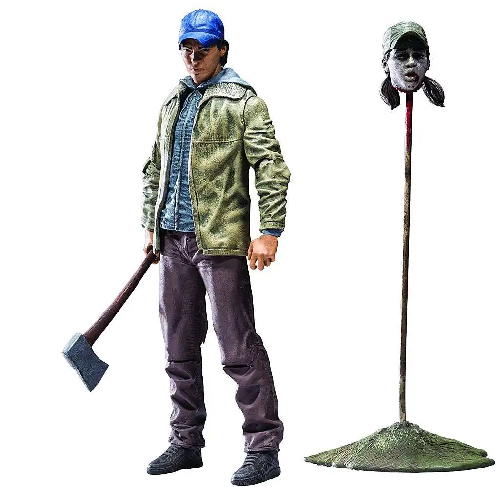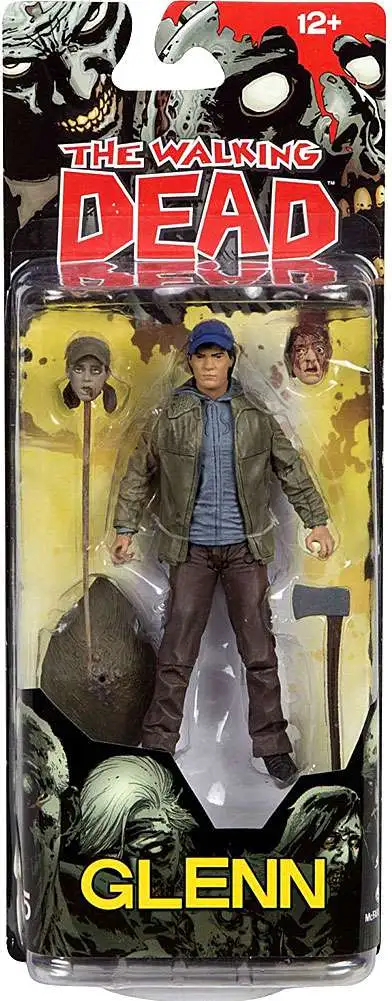 One of the original survivors from Atlanta, Glenn was famous for putting himself in danger for the necessity of his group. Whether this was running for supplies, or diving in head first into a fight, he was always there to keep those he loved safe. This aspect made him one of Ricks closest and most dependable friends. Unfortunately no one is truly safe in this harsh world. Despite surviving countless dangers, Glenn meets his demise at the hands of Negan, when he and the group was captured while he was on his way to make a new home in Hilltop for his family. One of the most tragic deaths in the entire Walking Dead Series, his death was a catalyst for the war and chaos soon to follow. Figure features fan favorite Glenn dressed in his classic outfit with a jacket and baseball cap. Comes with 22 Points of articulation, an alternate smashed-in head, an axe, and a severed Rosita head on a stake with base, as homage to the recent events in the comic.