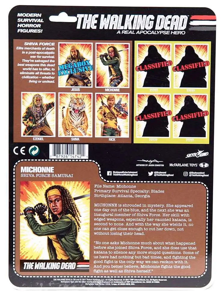 Michonne comes in a vintage style carded action figure package with classic artwork by Jason Edmiston.buy = ‘Y’;