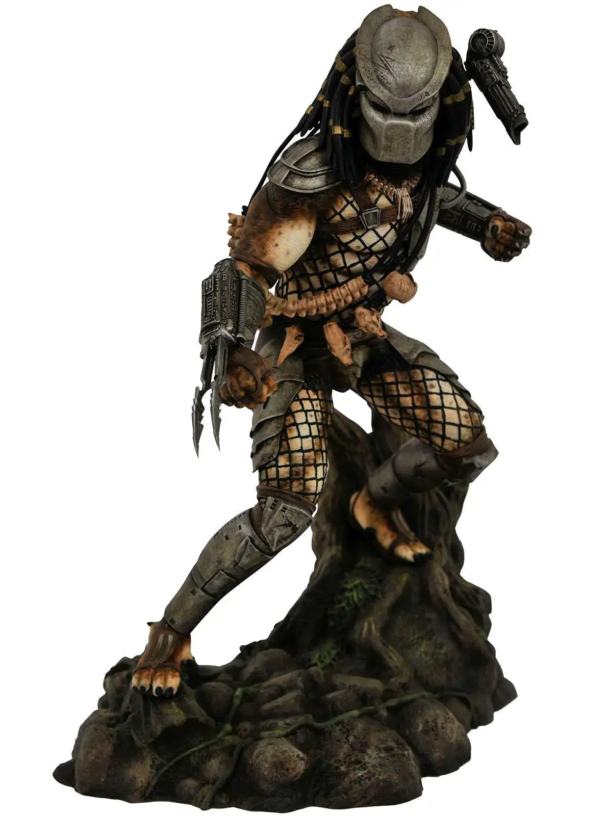 A Diamond Select Toys release! The hunt is on! The Predator surveys his hunting grounds in the new line of Gallery PVC dioramas based on the famous film franchise. Measuring approximately 10 inches tall, this sculpture of the original Jungle Predator features detailed sculpting and paint, is cast in high-quality plastic, and comes packaged in a full-color window box. Designed by Caesar, sculpted by Alterton.