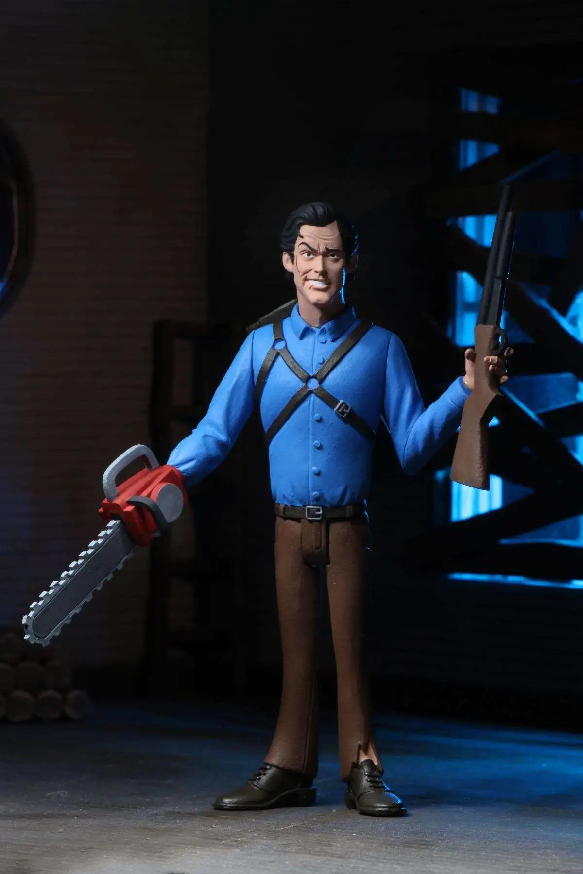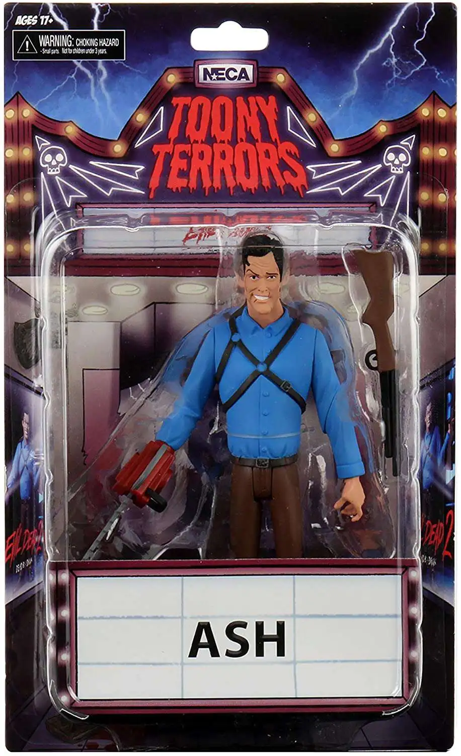 Standing approximately 6 inches tall, the action figure assortment includes Ash (Evil Dead 2) with shotgun accessory, The Nun (The Conjuring Universe) with painting accessory, and Count Orlok (Nosferatu) with rat accessory.