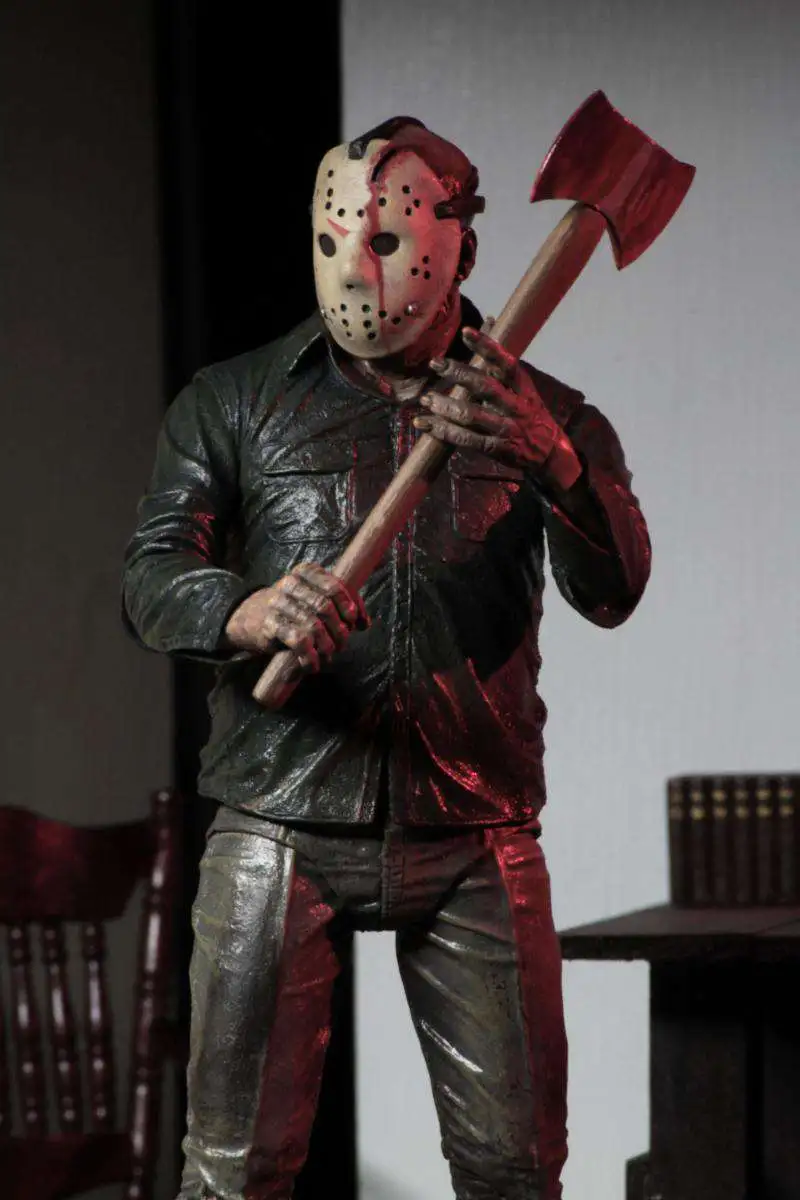 It’s also packed with accessories–machete, axe, ice pick, and tombstone. Bonus: includes an extra left hand with split fingers that can be used with this figure or the Ultimate Part 4 Jason! Comes in a display-friendly deluxe window box with opening flap.