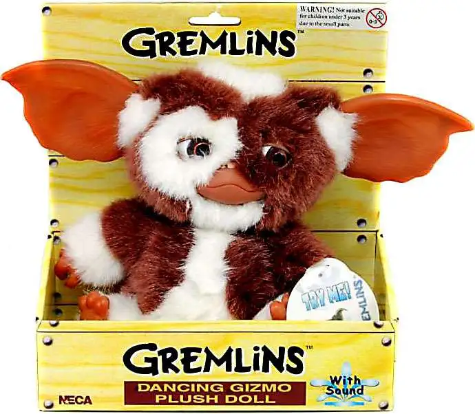 From the classic 1980s movie Gremlins, this adorable Gizmo plush can’t wait to entertain you! Just turn him on and watch him sing and dance. Gizmo features lifelike fur with plastic molded ears, hands and feet.