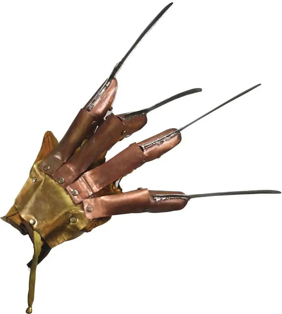 Wear or display this replica of Freddy’s iconic glove from the original 1984 Nightmare on Elm Street film! To create each hand-crafted piece, metal fingers are riveted to an authentically distressed leather-like glove.
