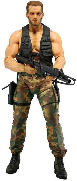 Jungle Encounter Dutch is faithful to his appearance when he first encounters the Predator in the jungle, complete with all new shirtless torso and military vest, features over 20 points of articulation, an M-16, Pistol, and Knife accessories.