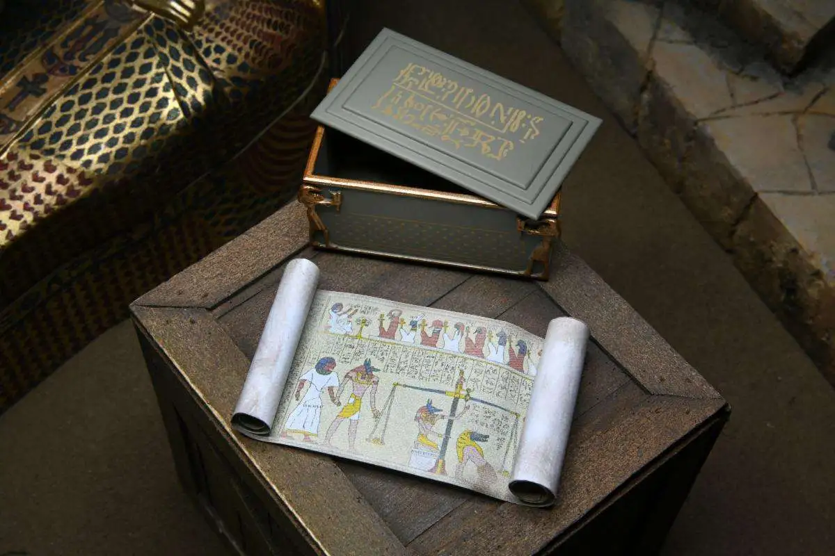 Standing in 7 scale, the figure comes in premium packaging with interchangeable heads, interchangeable hands, and Egyptian chest that opens.