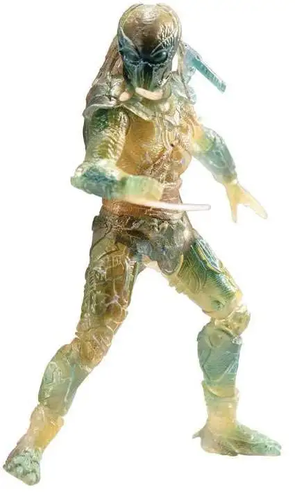 From Hiya Toys. A PREVIEWS Exclusive! Based off the blockbuster film Predators, Hiya Toys presents this 1/18 scale action figure of the Tracker Predator with his active camouflage as a translucent figure! This figure captures the creature’s iconic look with a fully poseable body and detailed paintwork at a 4 1/2″ size!