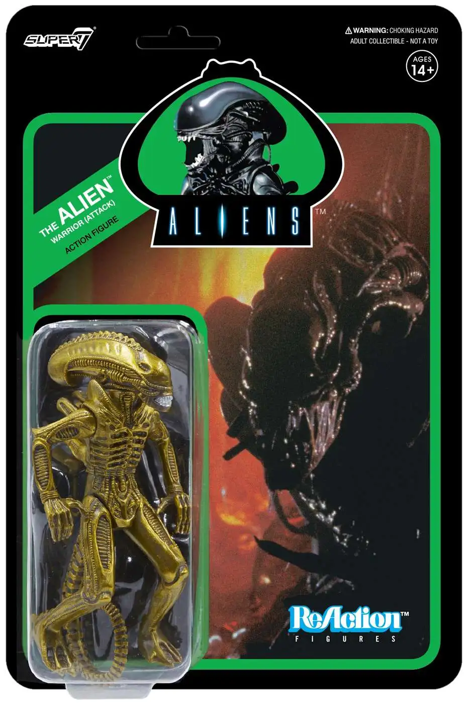 Sometimes offense is the best defense. When it comes to Xenomorph Warriors in Aliens, whether theyre protecting the Queen and her freshly laid facehugger eggs, or gestating chestbursters, attack is generally their modus operandi. This 3.75 Aliens ReAction figure features a striking gold color and is ready to lunge in attack at the slightest provocation. When youre at the top of the food chain you might as well lean into it and add Xenomorph Warrior (Attack) ReAction figure to your collection.